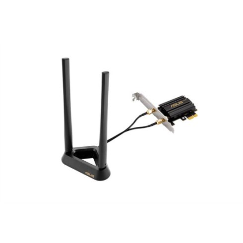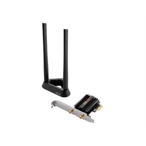 Az Asus PCE-AXE59BT egy WiFi 6E kapcsolattal, 2 külső antennával és mágnesezett talppal rendelkező PCI-e kártya. Támogatja a 6 GHz-es sávot, a 160 MHz-et, a Bluetooth 5.2-t, a WPA3 hálózati biztonságot, az OFDMA-t és a MU-MIMO-t.